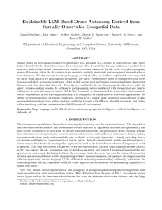 Explainable LLM-Based Drone Autonomy Derived from Partially Observable Geospatial Data